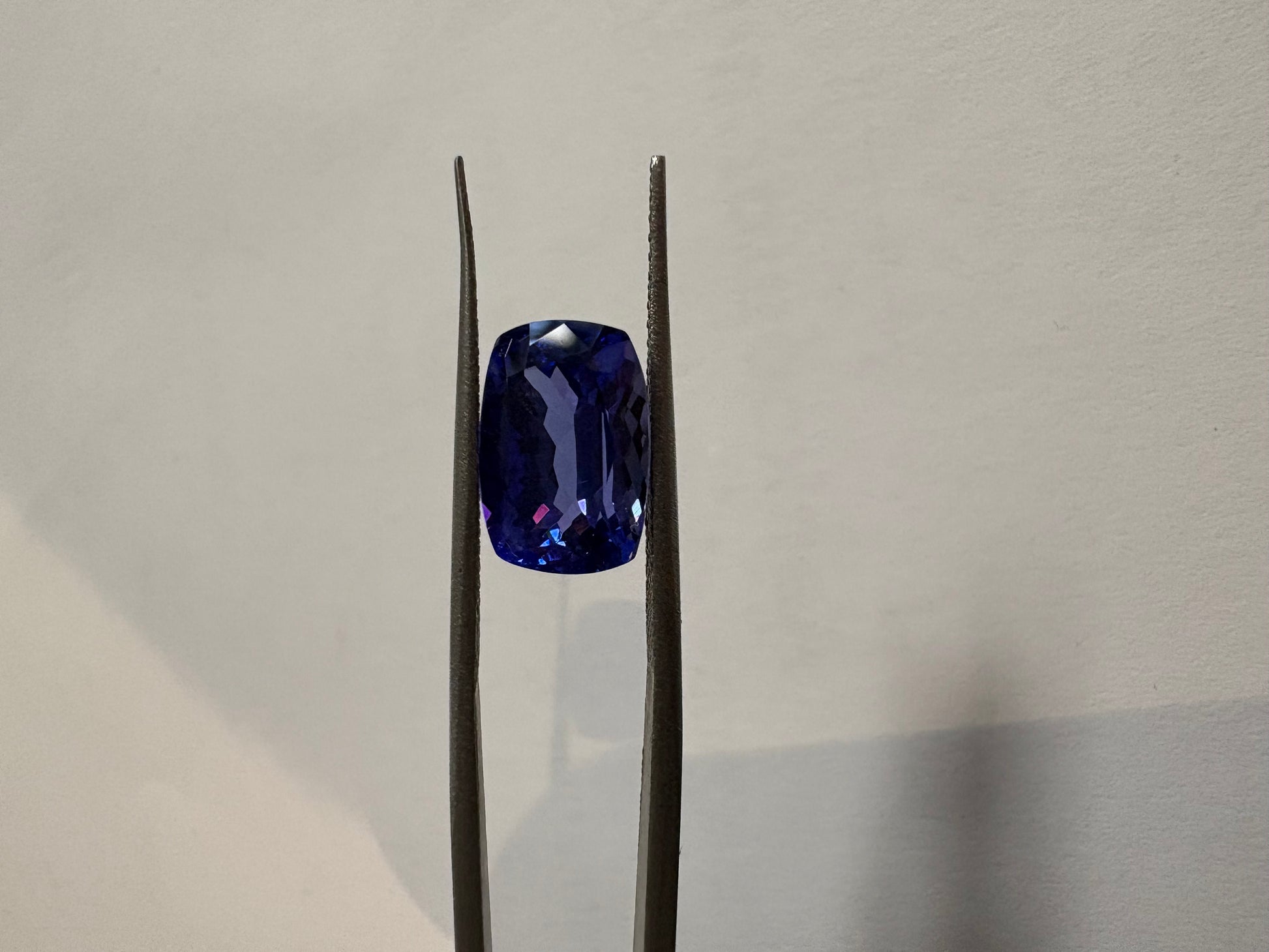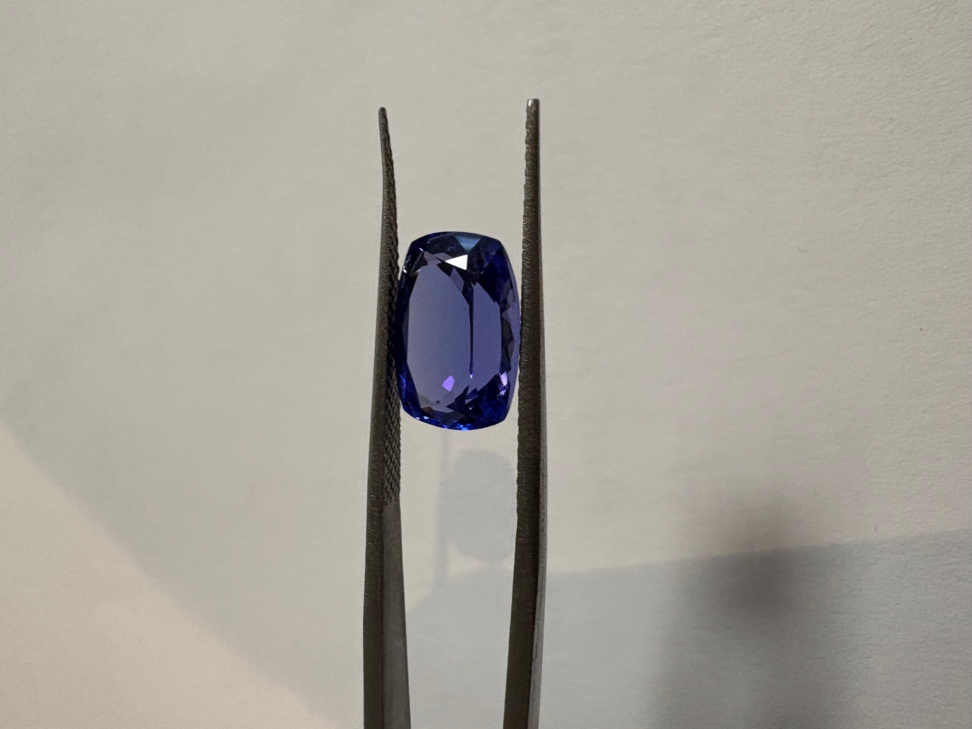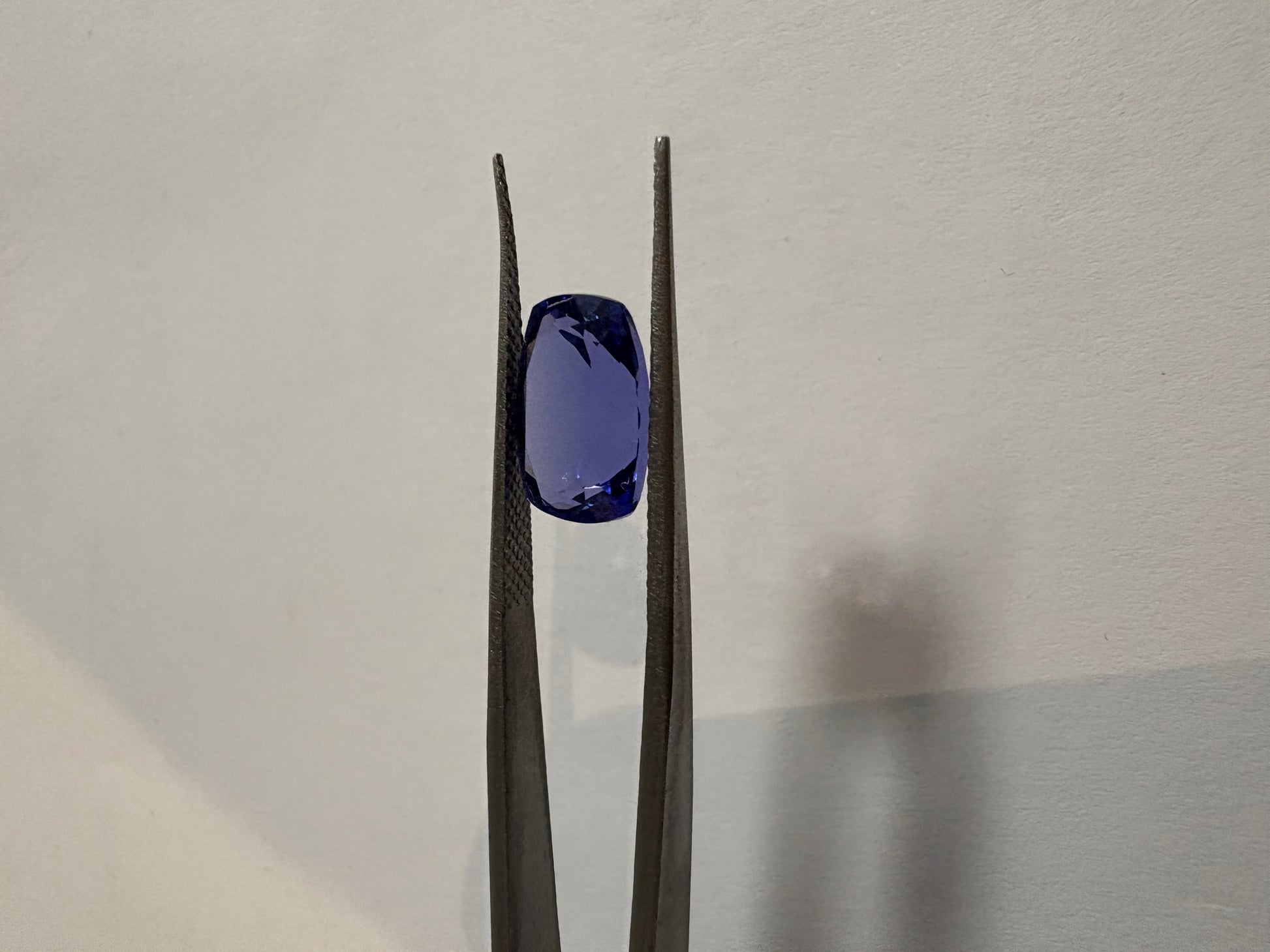 This exquisite Tanzanite weighs 3.65 carats and displays a rich, deep blue-violet color with remarkable clarity and brilliance. Expertly cut to maximize its sparkle, the gemstone reflects light beautifully, revealing the captivating depth of its hue.