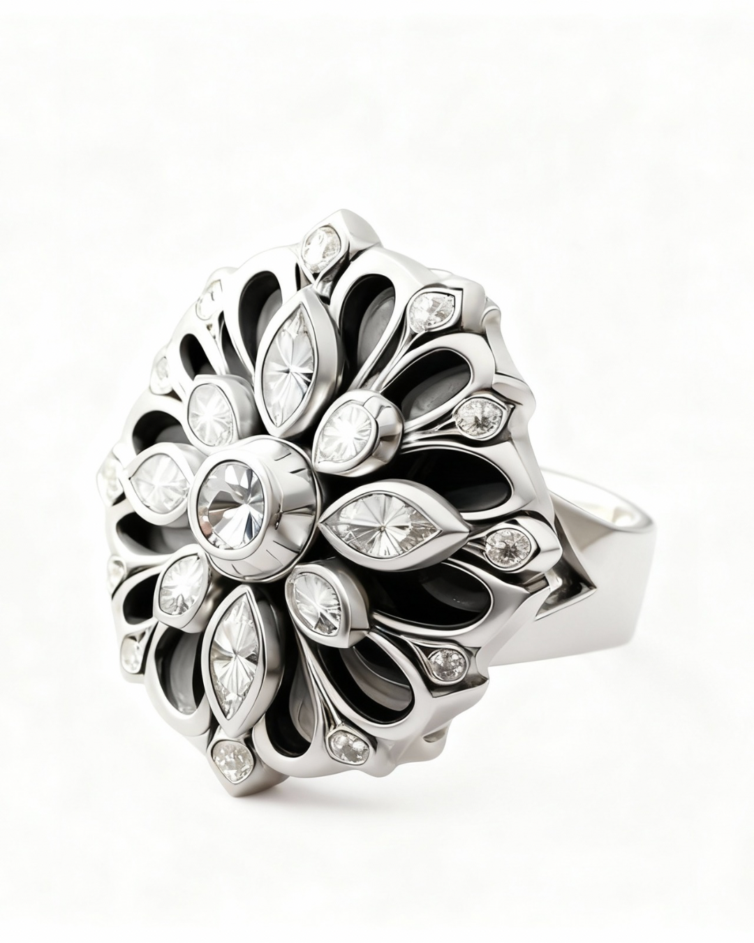 Het ontwerp refereert aan bloemvormige ornamenten,