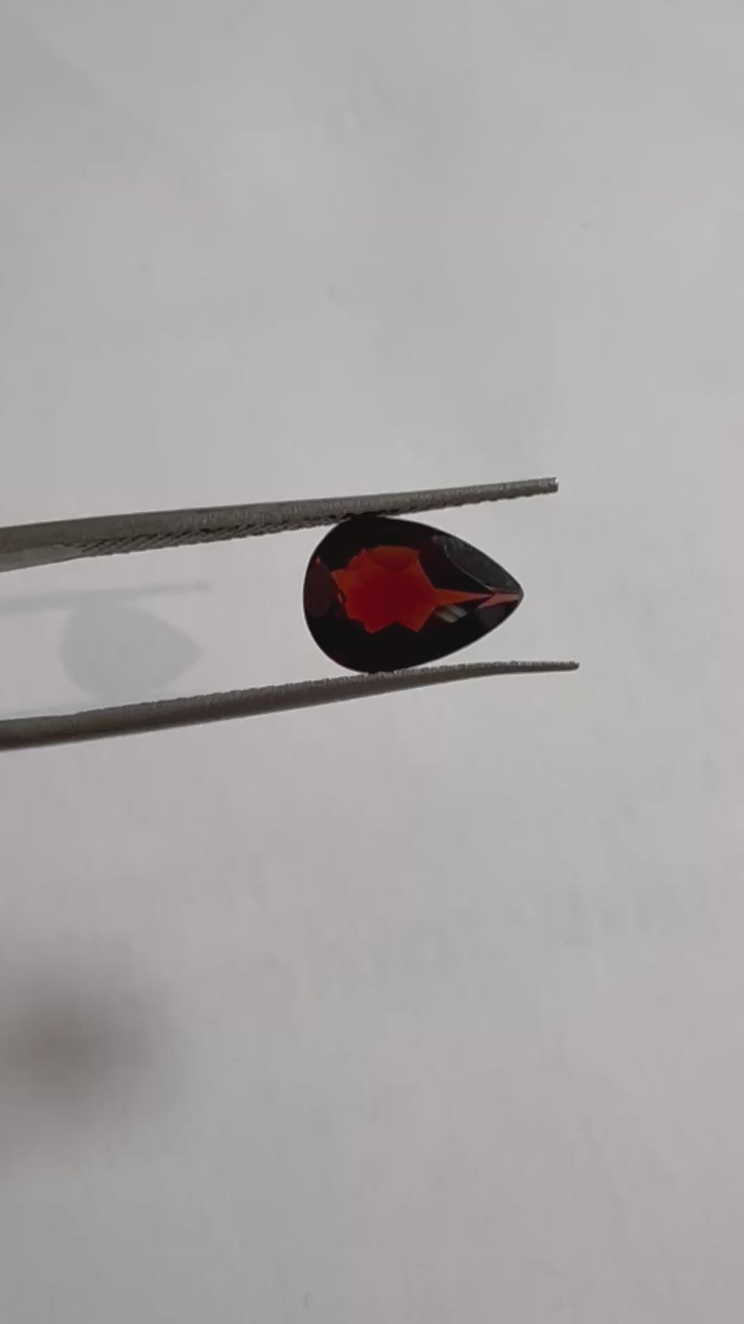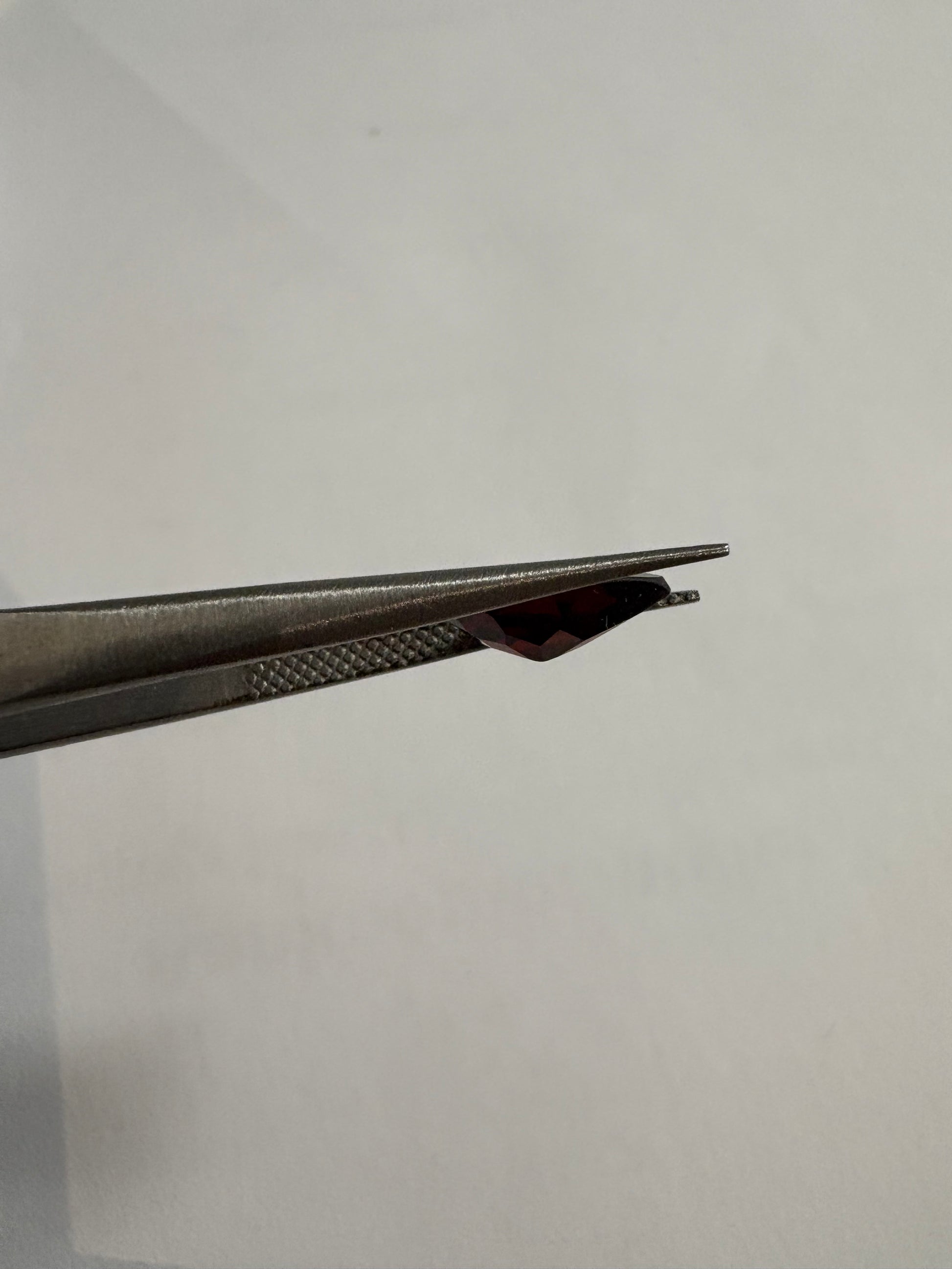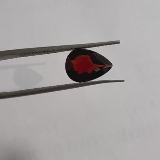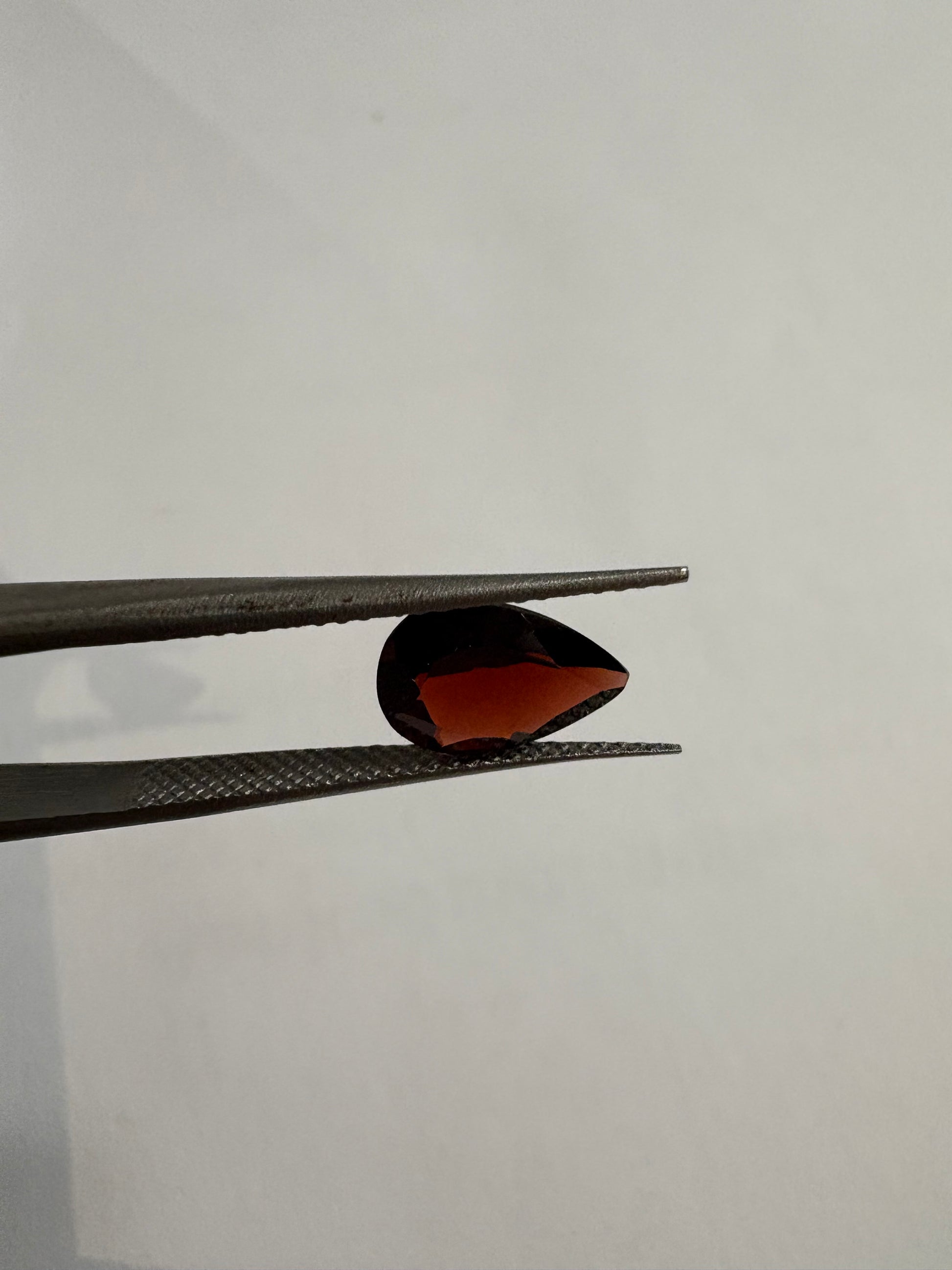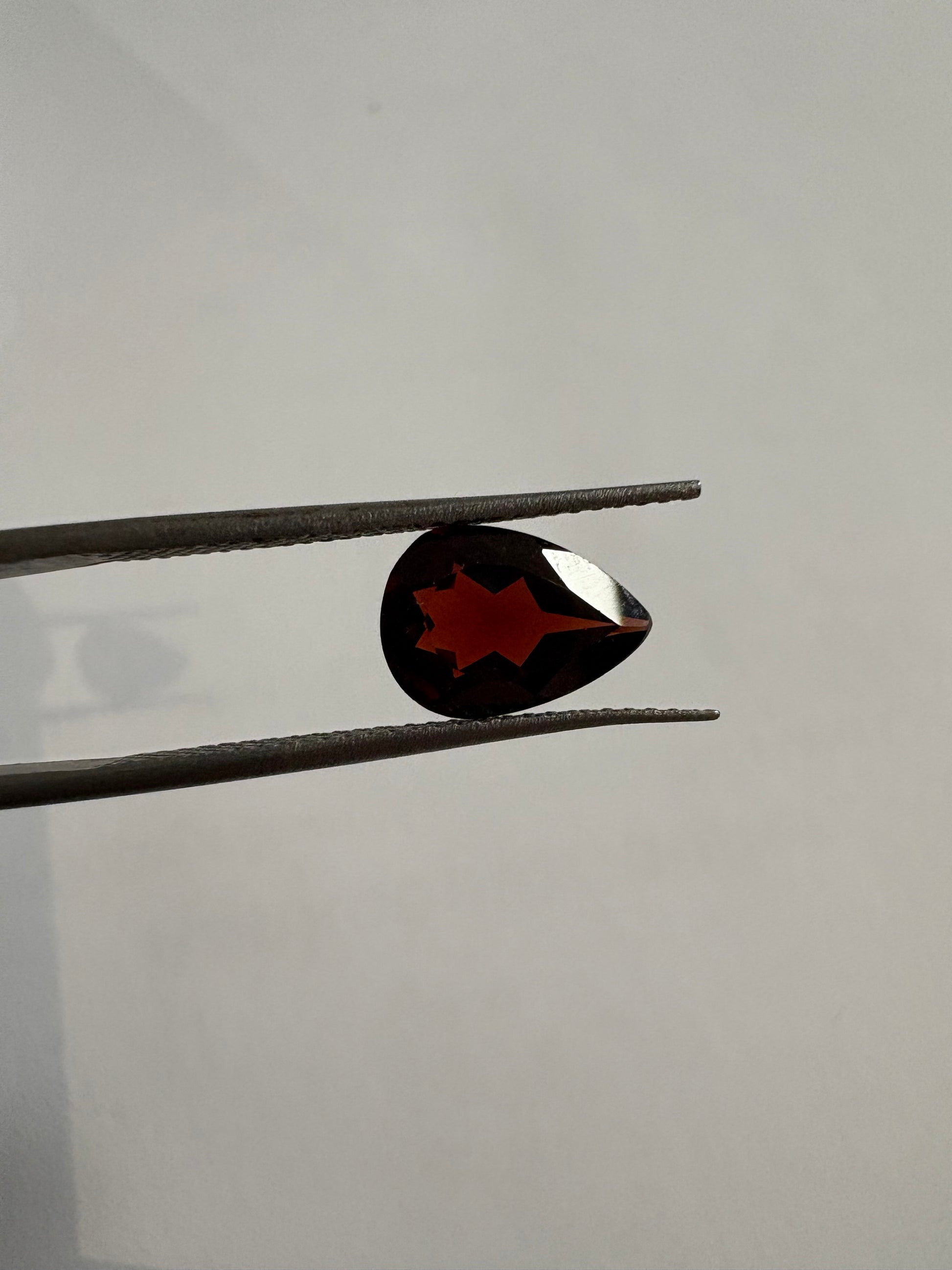 This beautiful garnet weighs 1.80 carats and displays a rich, deep red color with excellent clarity and brilliance. Expertly cut to enhance its natural sparkle, the gemstone reflects light beautifully, revealing its warm and vibrant tones.