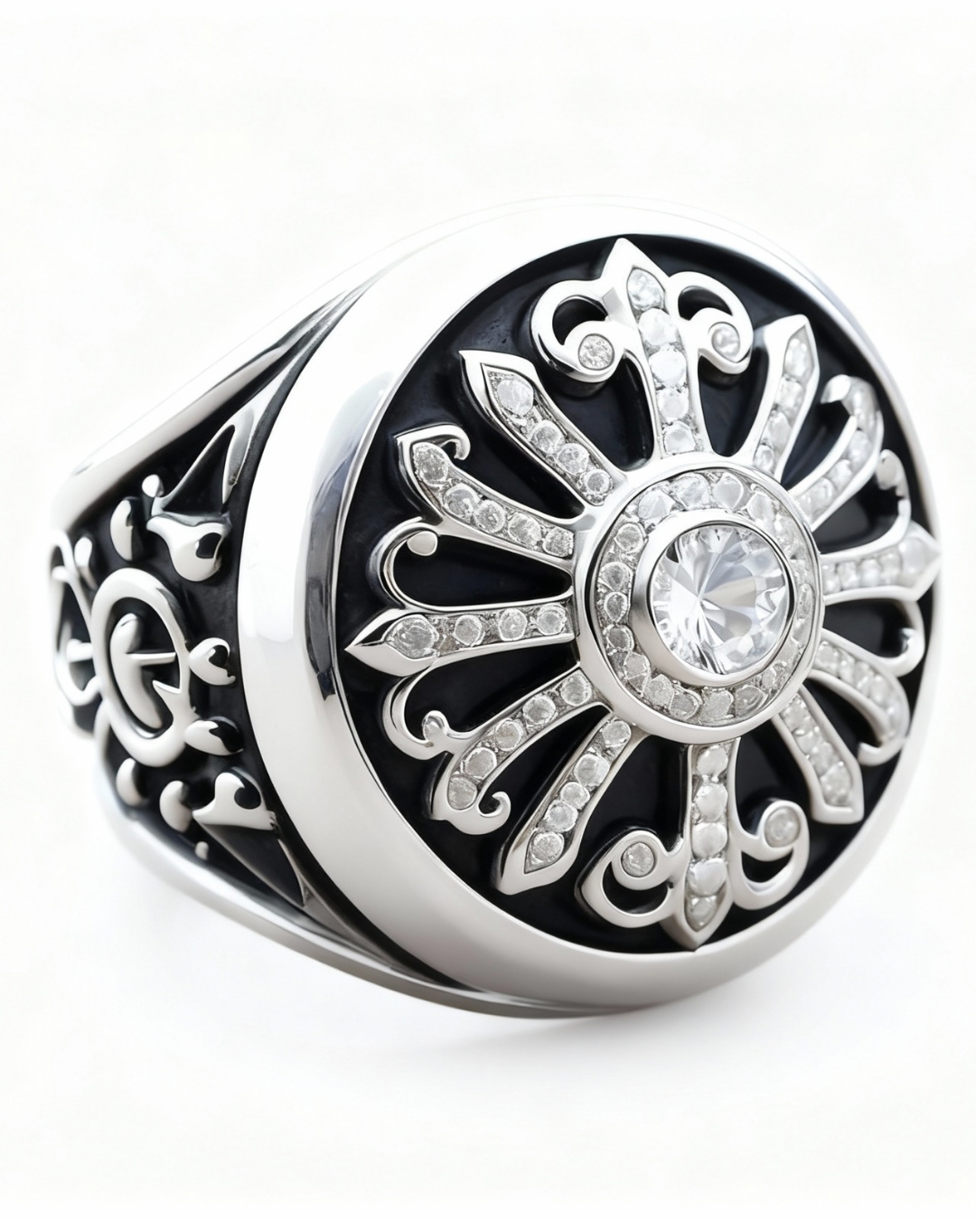 ‘ stralen’ en omlijst door vintage filigraan, geïnspireerd op